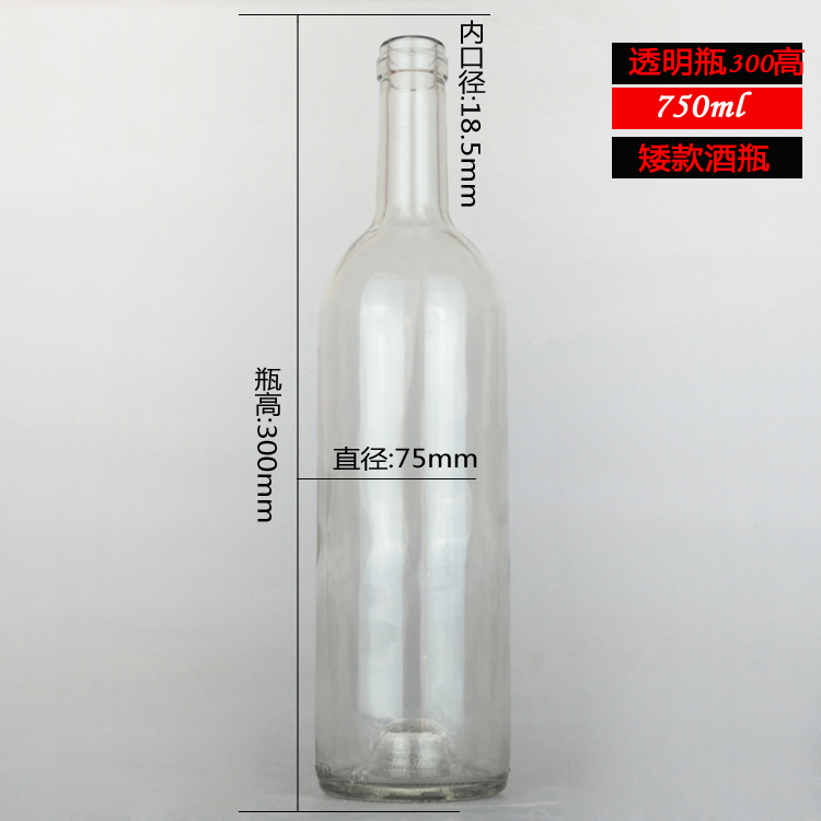 750ml 透明矮款紅酒瓶(píng)葡萄酒玻璃瓶(píng)